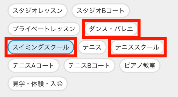 スイミングスクール、テニススクール、クラシックバレエ、キッズダンススクール、ストレッチヨーガは、WEBでスクール無料体験予約が可能です。(ピアノ教室はお電話にてお問い合わせください)