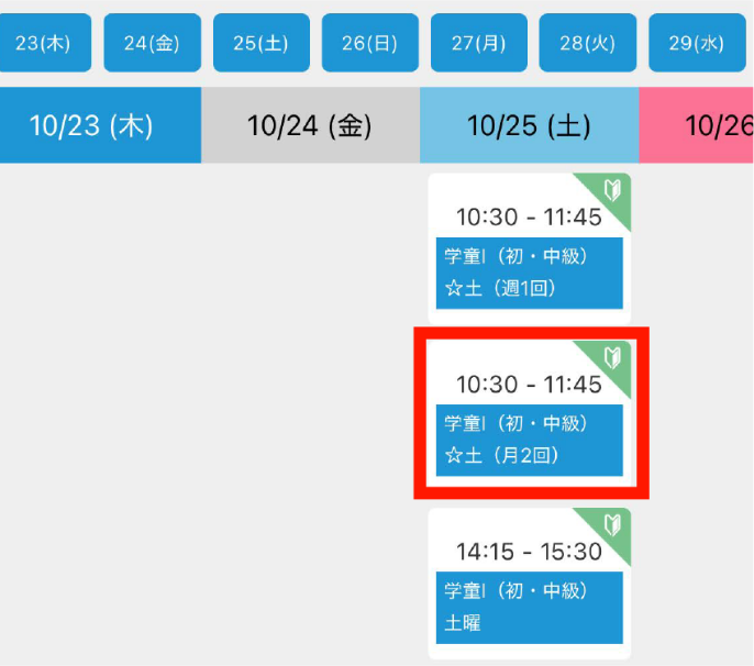 参加したいレッスンを選択します。