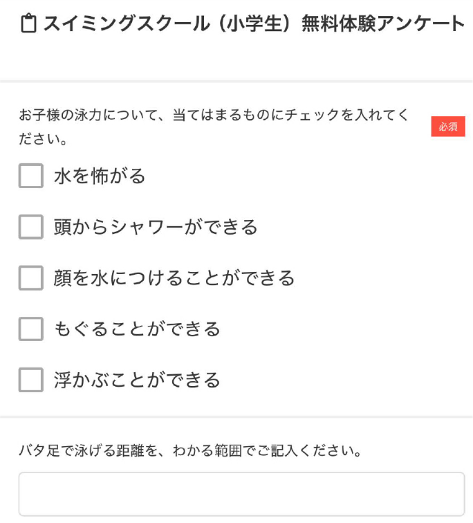 お子様の泳力についてアンケートにお答えください。(スイミングスクールのみ)