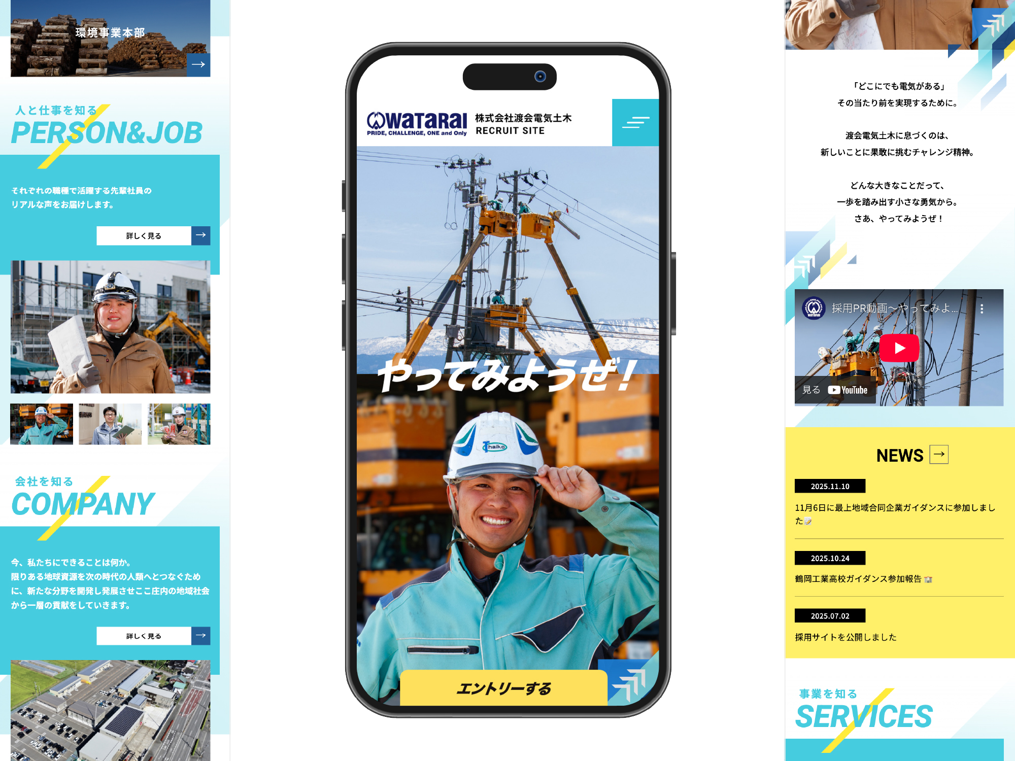 電気・通信・土木・環境事業を展開し、地域の暮らしを支えている同社のリクルートサイトを制作させていただきました。