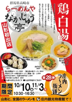 第28弾 らーめんや なかじゅう亭 期 間 10月10日(金)~11月3日(月) 時 間 10:30~16:30 定休...