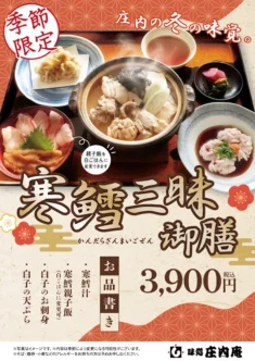 庄内庵では冬にぴったりの寒鱈メニューが始まりました。 1/13からは白子天ぷらや白子刺身、鱈親子丼も提供しております。 ...