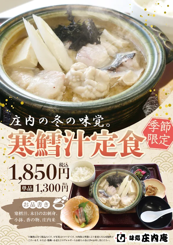 庄内庵では冬にぴったりの寒鱈汁が始まりました。